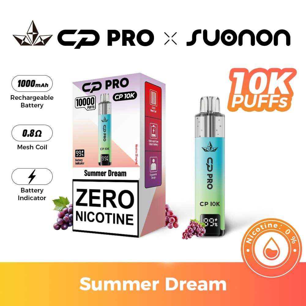 The CP Pro CP10K 0MG Prefilled Pod Vape Kit is the perfect choice for vapers who want a nicotine-free experience without compromising on flavour or performance. Designed with convenience and longevity in mind, this advanced device delivers up to 10,000 puffs, making it ideal for extended use.